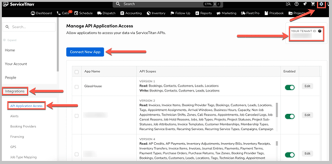 Learn how to connect ServiceTitan to GlassHouse by generating your Client ID and Secret Key.