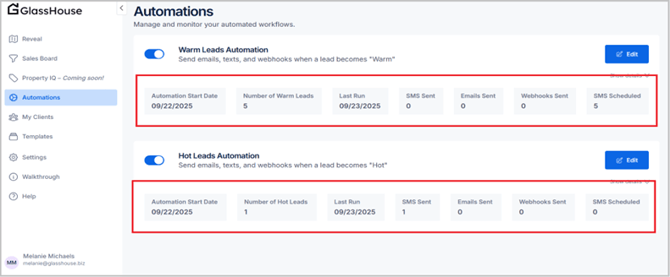 Learn how to set up automated workflows and use metrics in GlassHouse to streamline follow-ups and track lead engagement.